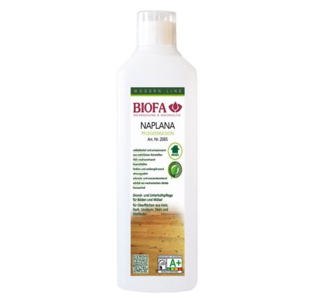 Die ÖKO-Pflegeemulsion NAPLANA dient sowohl zur Grundpflege als auch zur Unterhaltspflege. Sie schützt und pflegt geölte, lasierte, lackierte oder gewachste Böden, Glattleder und auch andere Oberflächen gegen Schmutz und mechanischen Abrieb.