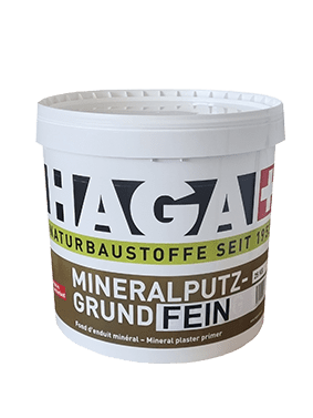 HAGA Mineralputzgrundierung und HAGA MineralputzgrundFEIN sind Voranstriche für HAGA Verputze und Farben. Das Bindemittel ist ein Gemisch auf Organo-Silikatbasis (Wasserglas). Zusätze sind Cellulose, Kreidemehle, Talkum, Naturharze, feine Steinmehle, Calciumcarbonate.