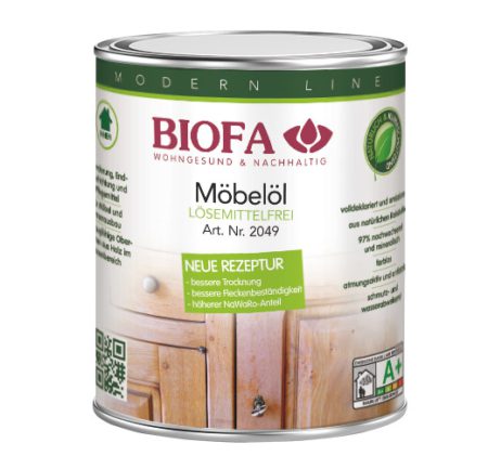 Artikelnummer: möbelöl-lösemittelfrei Kategorien: Biofa, Hersteller, innen, Natürliche Holzbehandlung Schlagwörter: Biofa, Möbel, Öle
