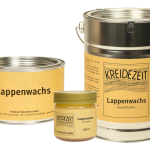 Es heißt Lappenwachs, weil es üblicherweise mit einem Lappen aufgetragen wird. Auf großen Flächen kann es auch gestrichen werden. Dazu Saflor Lappenwachs im Verhältnis 1:1 mit Balsamterpentinöl verdünnen. Saflor Lappenwachs betont die Holzmaserung und verleiht dem Holz, eine seidige und antistatische Oberfläche. Nach Bedarf abtönbar mit Kreidezeit Erd- und Mineralpigmenten. Bestens geeignet für Tönungen mit Titanweiß, da das Distelöl nicht gilbt – weiß bleibt weiß. Der hohe Gehalt an Distelöl garantiert eine lange „offene“ Verarbeitungszeit und durch die geringe Molekülgröße ein tiefes Eindringen auch in kleinste Holzporen. Das Bienenwachs füllt die Holzporen und sorgt für eine tastsympathische und kontaktwarme Oberfläche. Kreidezeit Saflor Lappenwachs enthält weder Lösemittel noch Wasser und besteht ausschließlich aus natürlichen Ölen und Wachsen. Es enthält keine „versteckten“ Alkydharze, die z.B. aus nichttrocknenden Ölen wie Raps-, Soja- oder Sonnenblumenöl hergestellt wurden. Ungeeignet für Fußböden, Küchenarbeitsplatten und im Außenbereich.